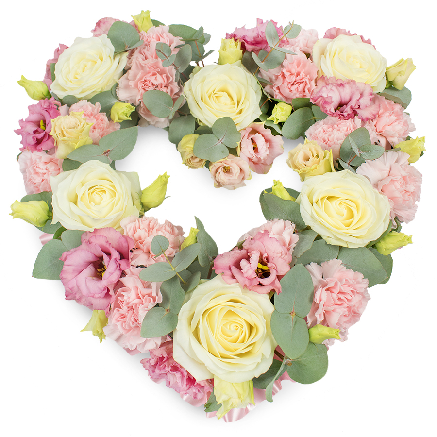 Honor your loved one with our Beautiful Tribute Bouquet, a stunning arrangement featuring white roses, pink carnations, pink lisianthus, and eucalyptus leaves. Designed with care, this bouquet beautifully conveys your heartfelt emotions and cherished memories.